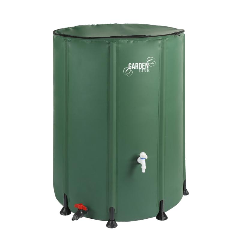 Skládací sud na dešťovou vodu o objemu 750 l. Vyrobeno z PVC, materiálu odolného proti UV záření a korozi. Vodu můžete čerpat shora po odepnutí zipu nebo použít kohoutek či hadici. Sada obsahuje všechny potřebné komponenty včetně 6 trubic s nožičkami pro stabilitu, filtru, kohoutku s rychlospojkou a nouzového přepadu. Nádrž se nejen velmi snadno sestavuje, ale také skladuje - ve složeném stavu zabírá málo místa.