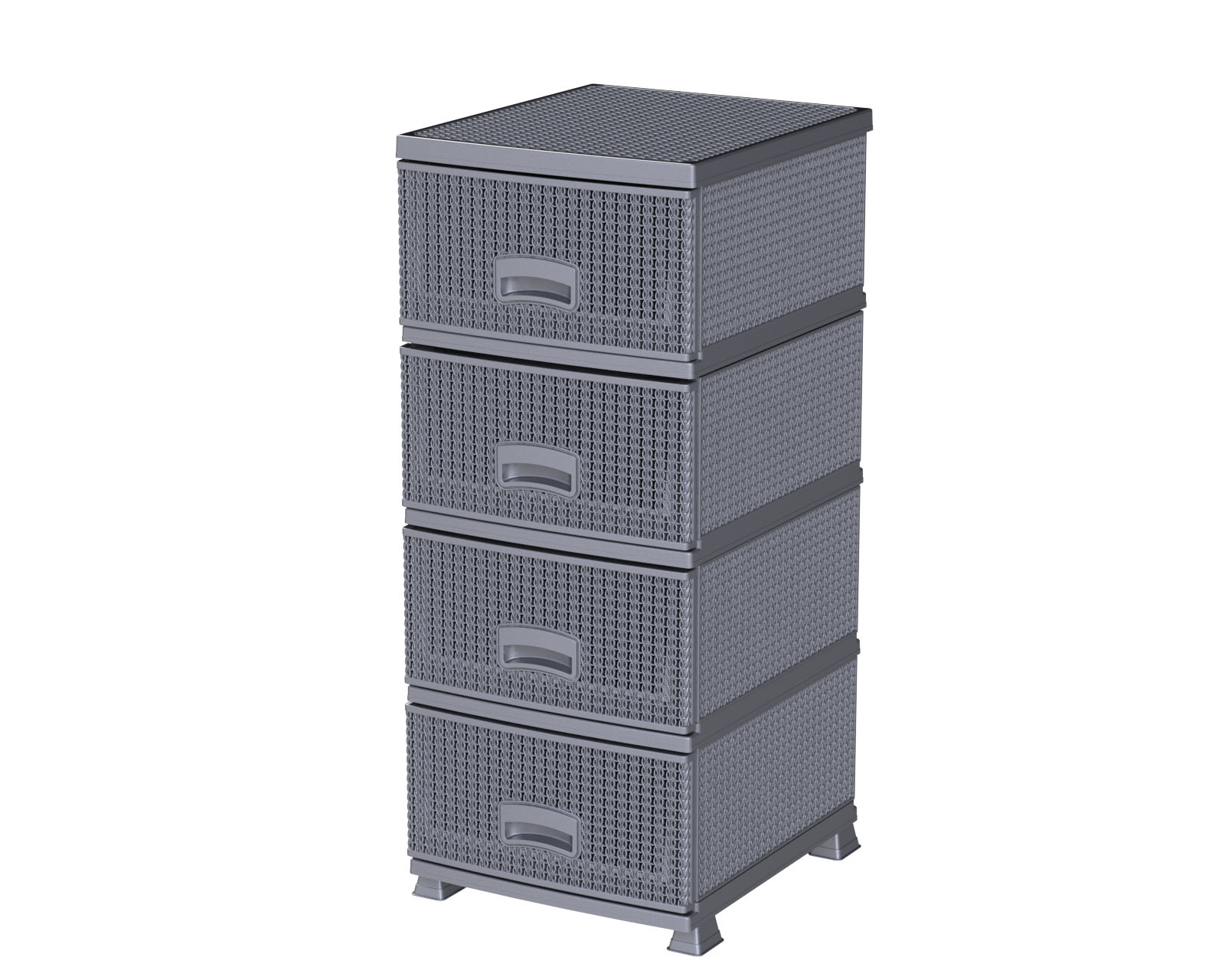 Tato komoda je vyrobena v moderním ratanovém vzoru, je vybavená 4 zásuvky s úchytem, snadno přenosná a prostorná.