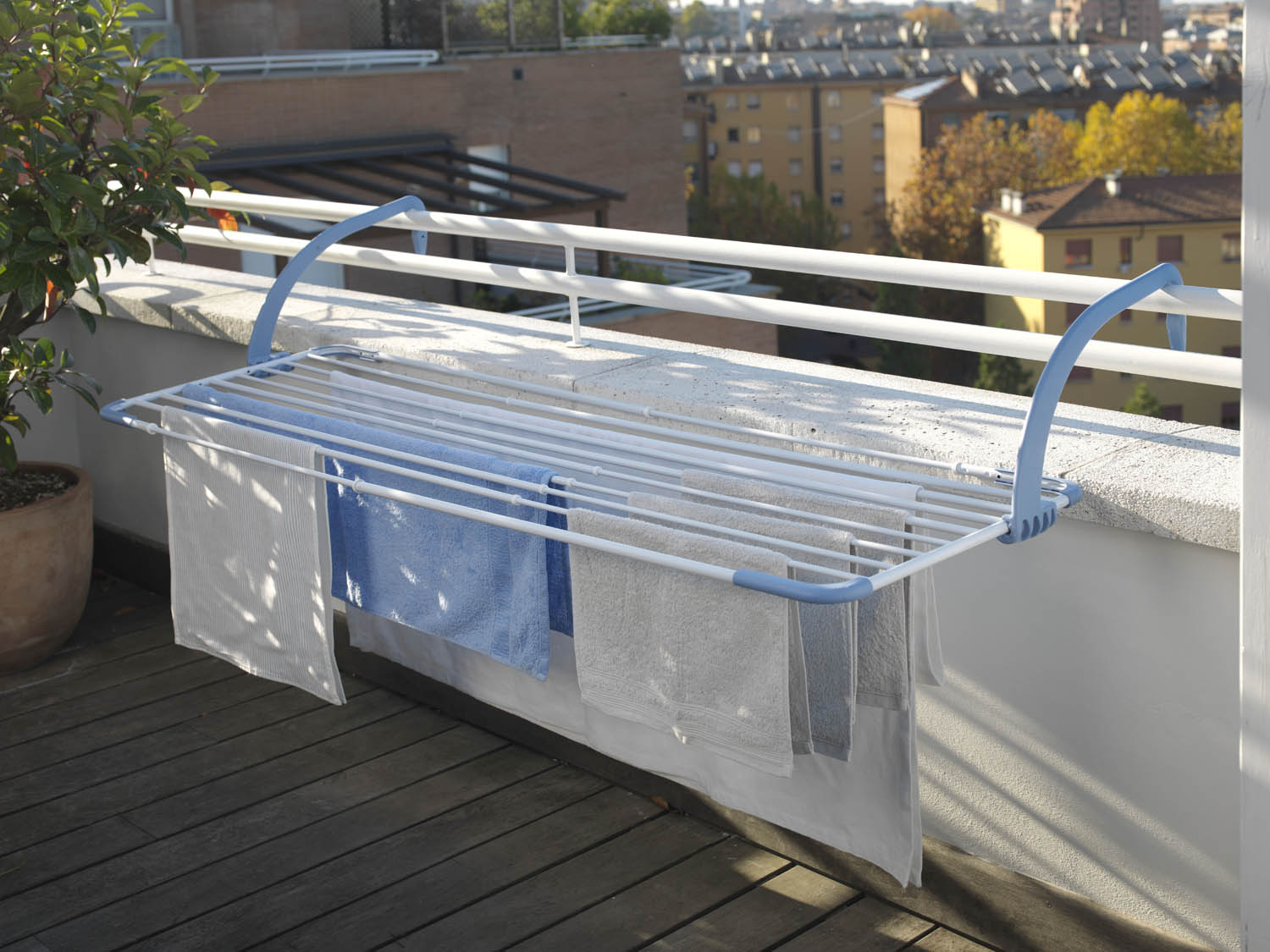 Teleskopický sušák vhodný na balkon či zábradlí.