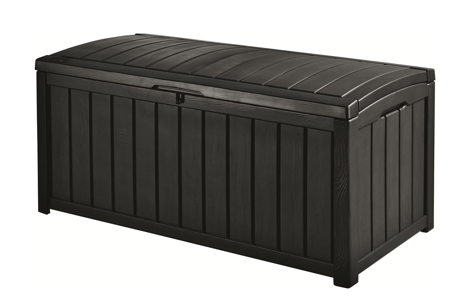 Větší plastový box s úložným prostorem o obsahu 390L. Glenwood odkládací box umožňuje pohodlně uložit vše, co chcete mít po ruce na Vaší zahradě. Vyznačuje se velkou kapacitou, díky tomu se do něj vejde například - zahradní nářadí, polštáře nebo přikrývky. Jeho montáž je velmi jednoduchá a nevyžaduje žádné specializované nástroje. Mechanismus, který usnadňuje otevření víka je nepochybně velkou výhodou produktu.