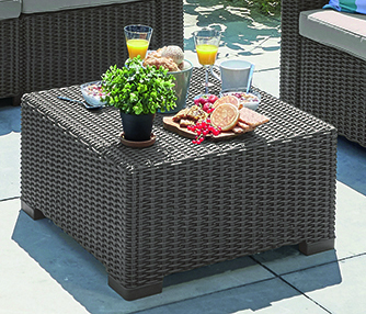 Doplňte svůj venkovní obytný prostor stolem California. Jeho lehký zaoblený proutěný design tvoří elegantní a stylový kontrapunkt k jakékoli sedací soupravě. Snadno proměňte svou zahradu nebo terasu ve venkovní obývací pokoj svých snů. Pryskyřičná proutěná konstrukce stolu je odolná vůči povětrnostním vlivům a UV záření, takže údržba je hračka. Stačí otřít vlhkým hadříkem a je připraven.